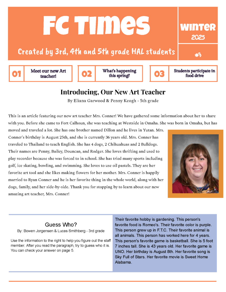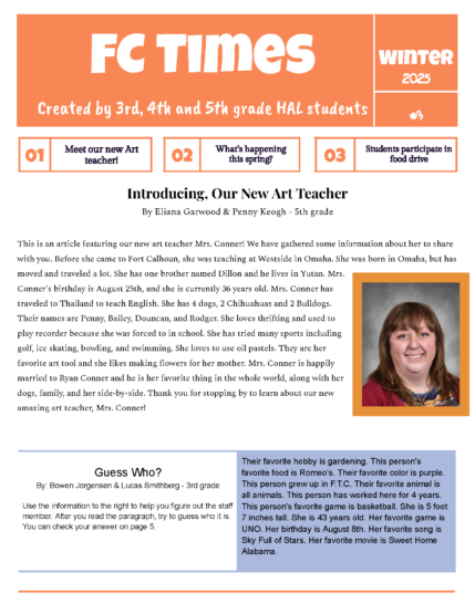 Posted on January 9, 2026 Author Jennifer Gepson Categories UncategorizedElementary Winter 2025 FC Times by HAL Students