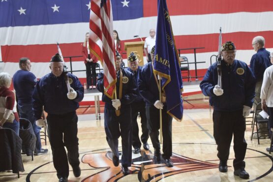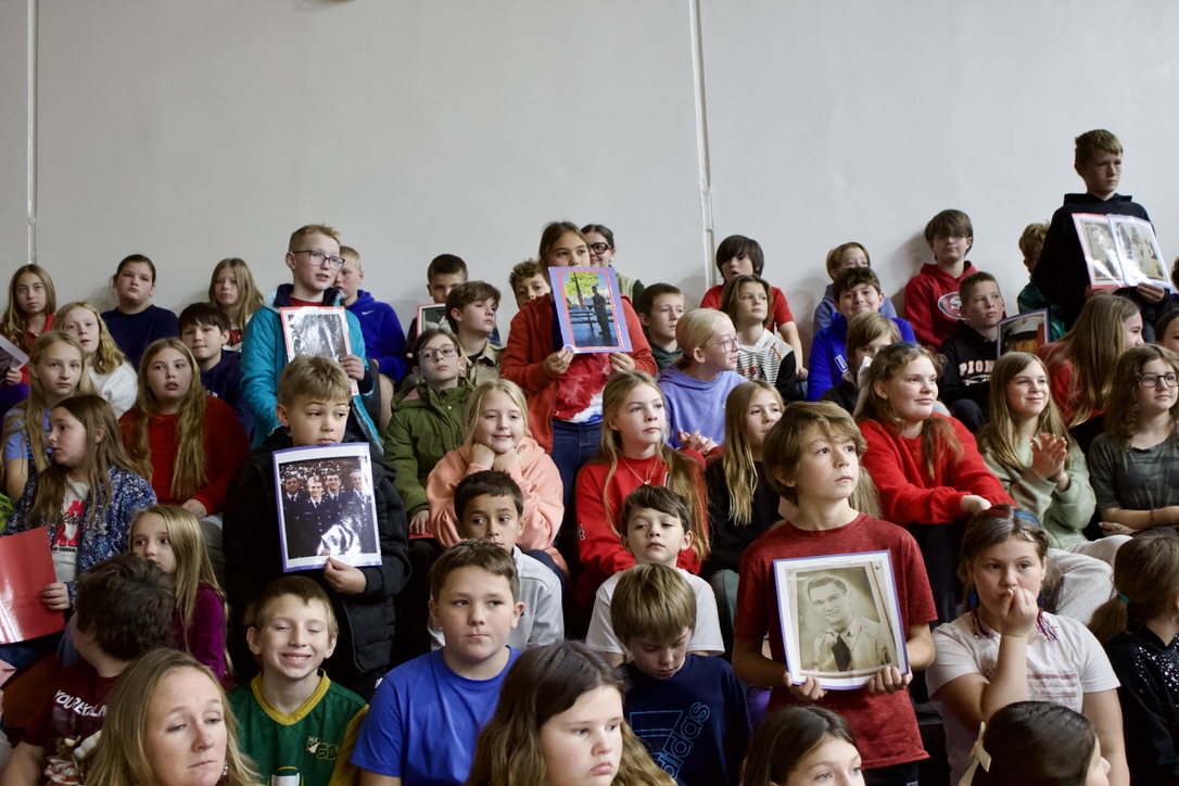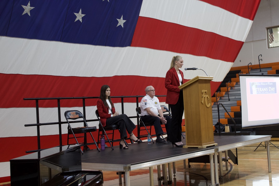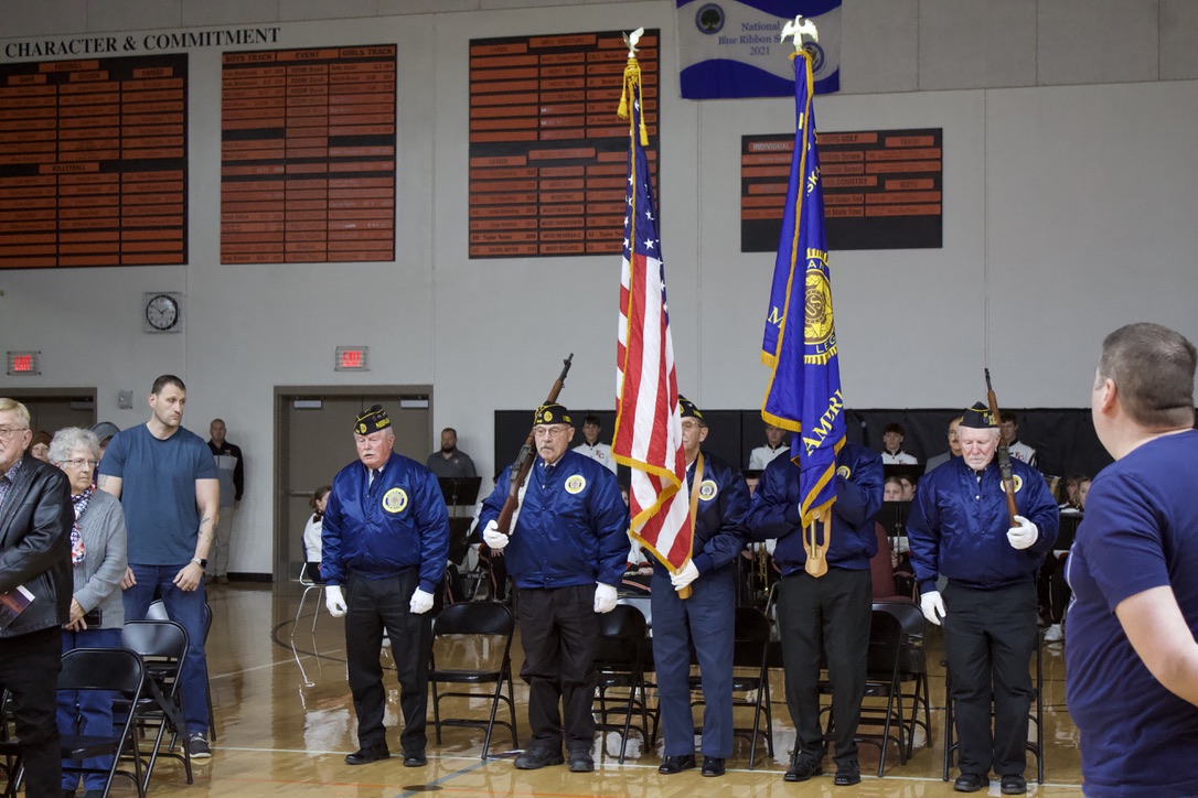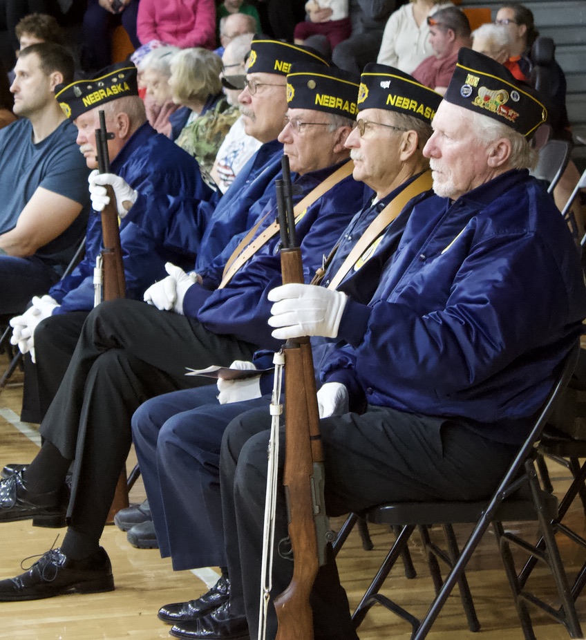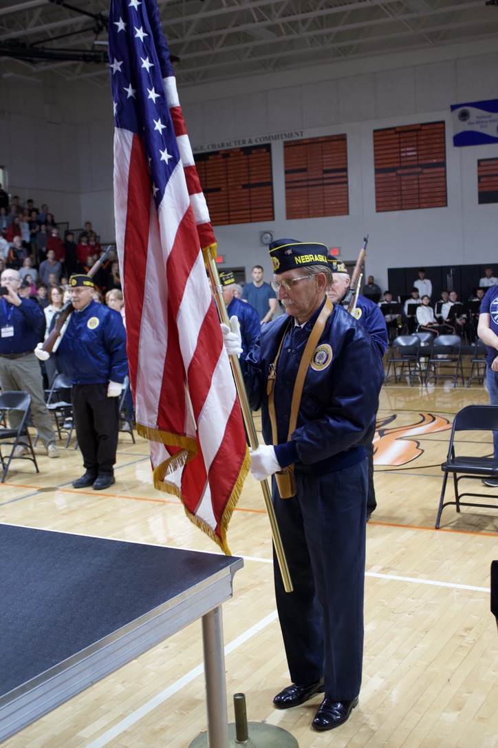 On Tuesday, November 11th, Fort Calhoun Community Schools honored our Veterans with a Veterans’ Day Ceremony. The event was hosted by our Skills USA students with an introduction by Skills USA member Ali Dill and the Emcee, Macie Collins. The High School Band and Choir performed several songs together, including “God Bless America” and “Brother, My Brother.” Plus, the 4th-grade students performed the patriotic song “Proud of our Veterans”. Dave Francois, a former Army mechanic who served in Vietnam, was our Keynote Speaker. Will Duros finished by playing “Taps” right before the Color Guard retired the colors. Several service members from the Military were in attendance and enjoyed a luncheon prepared by the school kitchen staff and served by the Skills USA students. Thank you to everyone who helped with this event. Once again, Fort Calhoun Schools would like to thank all our Veterans for their service to our country.