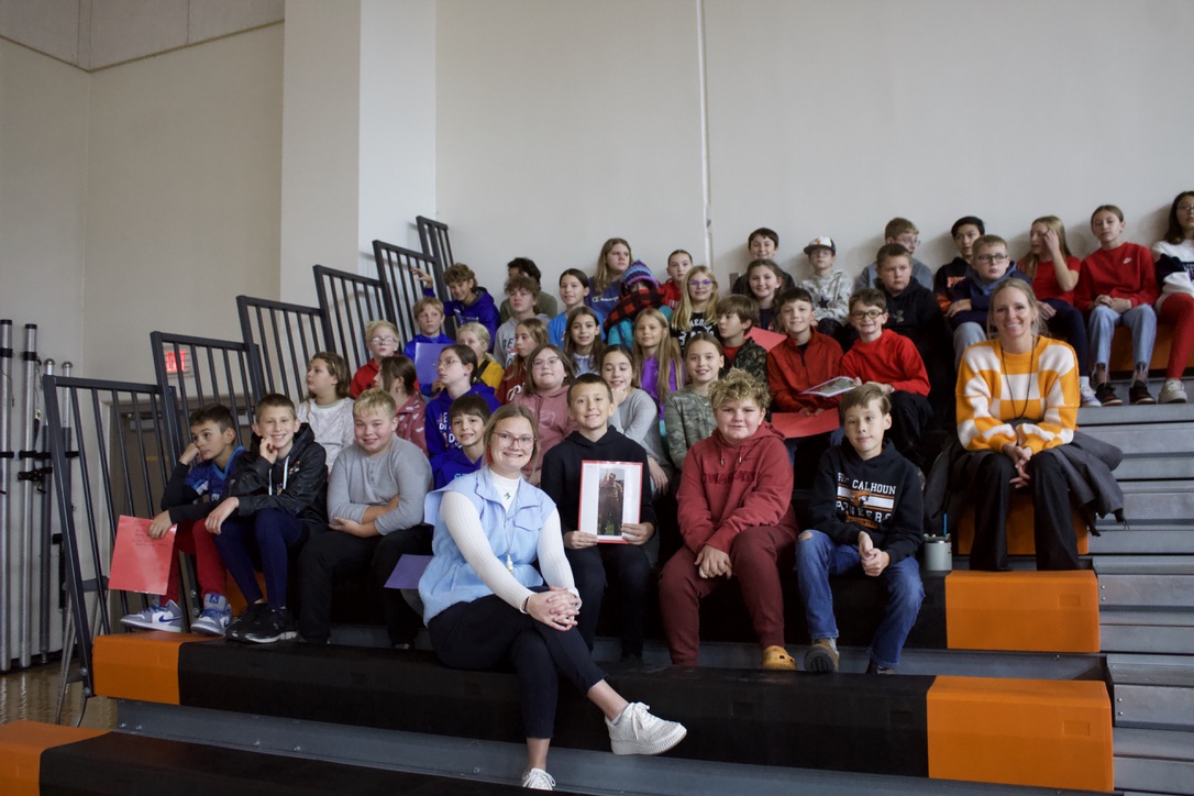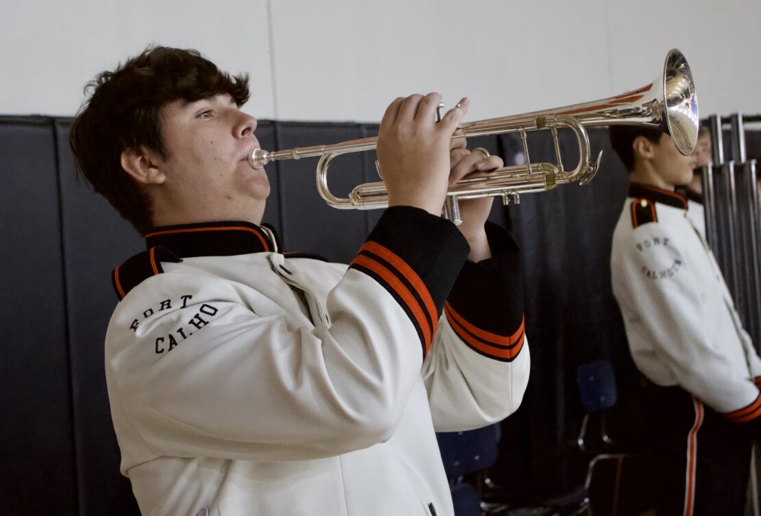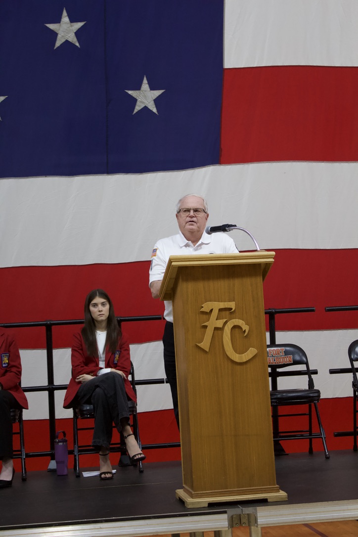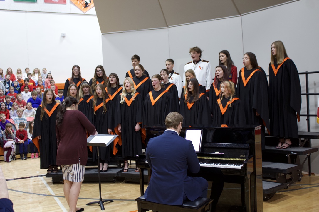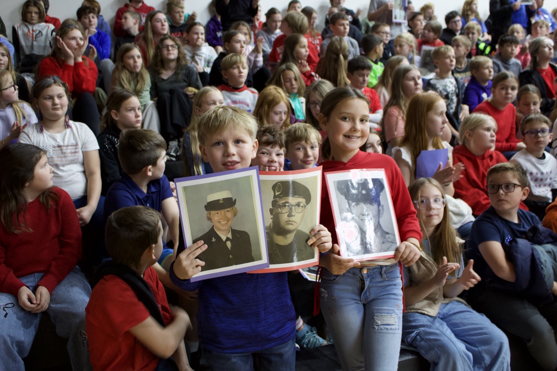 On Tuesday, November 11th, Fort Calhoun Community Schools honored our Veterans with a Veterans’ Day Ceremony. The event was hosted by our Skills USA students with an introduction by Skills USA member Ali Dill and the Emcee, Macie Collins. The High School Band and Choir performed several songs together, including “God Bless America” and “Brother, My Brother.” Plus, the 4th-grade students performed the patriotic song “Proud of our Veterans”. Dave Francois, a former Army mechanic who served in Vietnam, was our Keynote Speaker. Will Duros finished by playing “Taps” right before the Color Guard retired the colors. Several service members from the Military were in attendance and enjoyed a luncheon prepared by the school kitchen staff and served by the Skills USA students. Thank you to everyone who helped with this event. Once again, Fort Calhoun Schools would like to thank all our Veterans for their service to our country.
